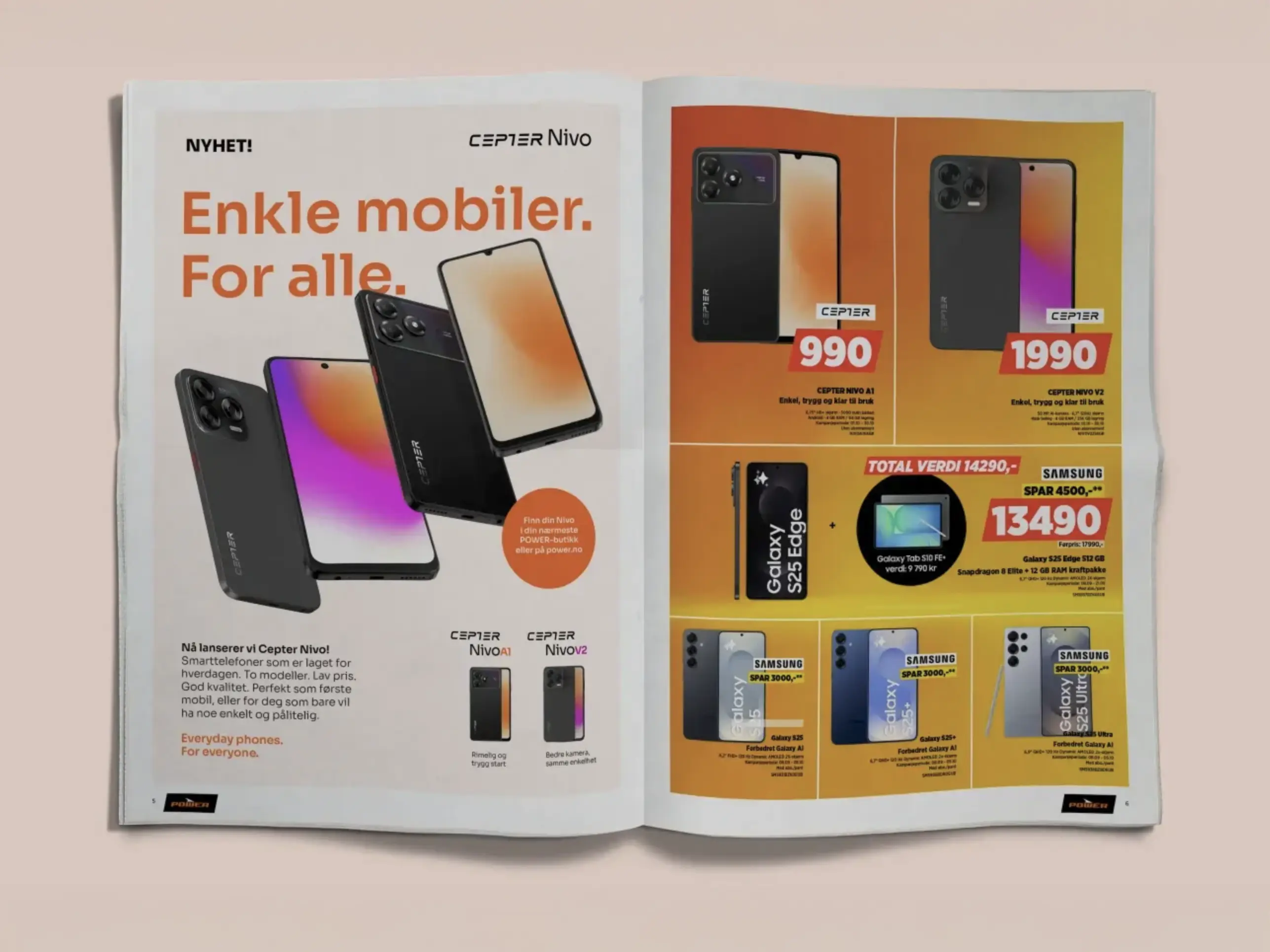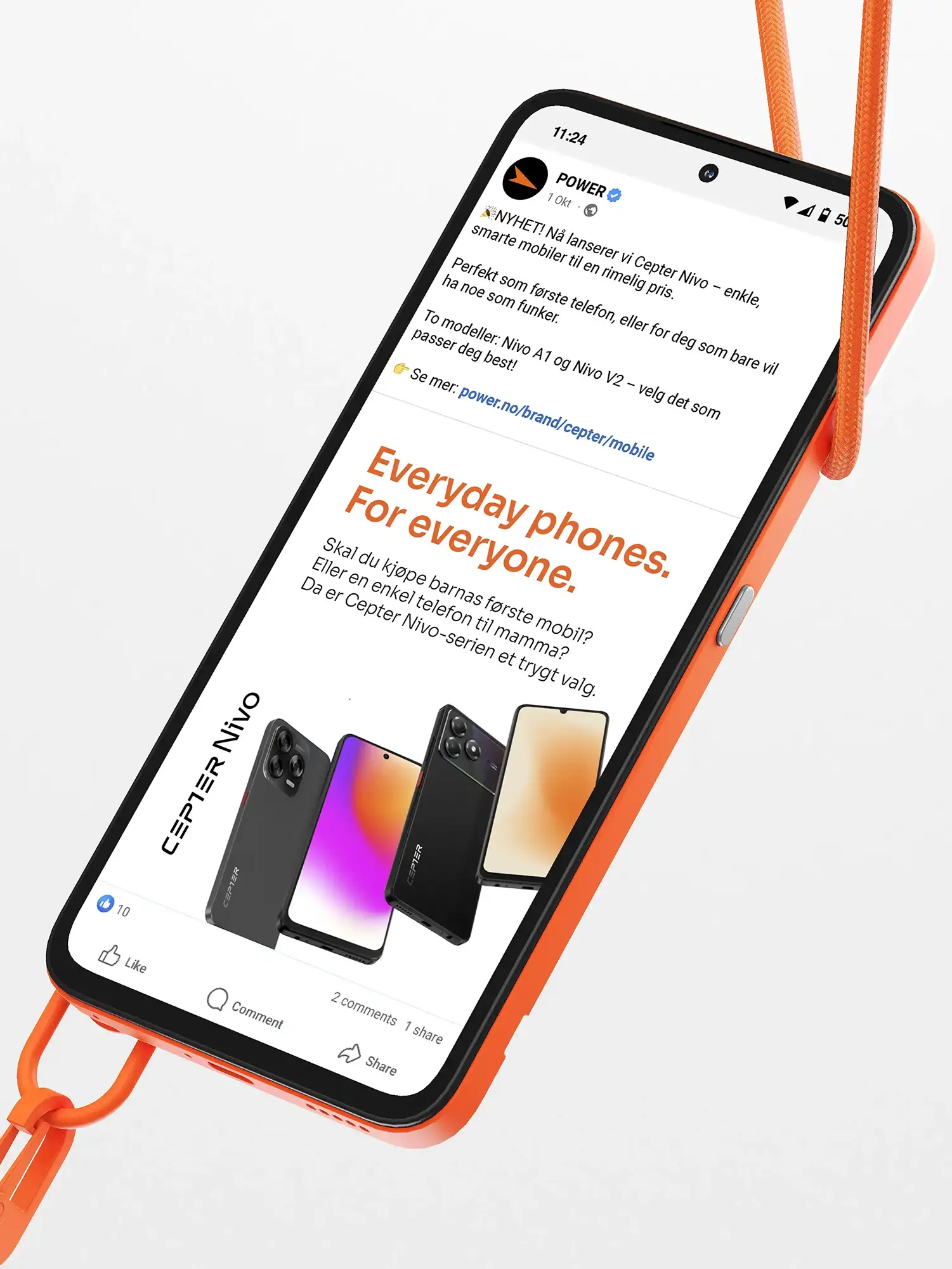 Power had built a strong reputation in consumer electronics across the Nordics. When they decided to launch a new mobile series under their own brand Cepter, they faced a specific challenge: create an identity that was clearly distinct from Cepter Gaming, communicate simplicity and accessibility to a broad audience, and work across multiple markets and platforms simultaneously.