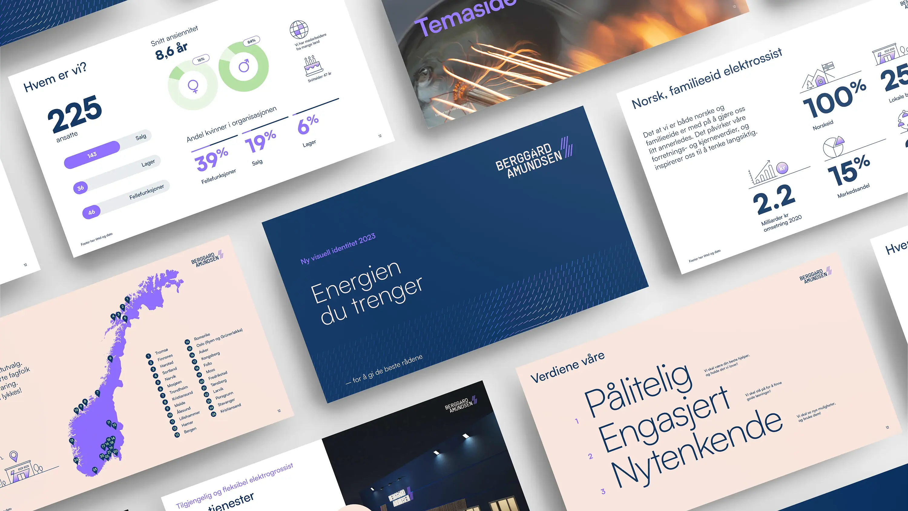 Berggård Amundsen is an independent, Norwegian and family-owned electrical wholesaler established in 1946. The progressive and innovative company needed a new visual identity that reflected their new strategy, and in 2021, we were tasked with designing a new logo and visual identity for Berggård Amundsen.